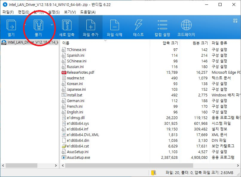 2. 파일을 선택해서 열어주거나 파일 우클릭 -> 압축해제를 눌러 열어줍니다.