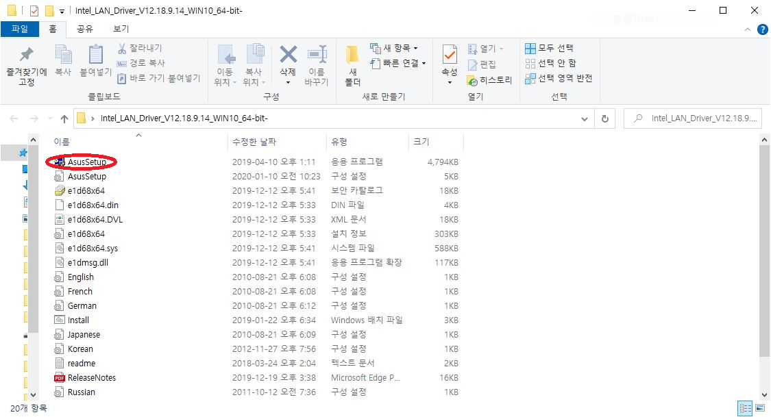 5. 아래와 같이 파일들이 나오면 'AsusSetup'파일을 실행시켜주고 잠시 1~2분정도 기다리시면